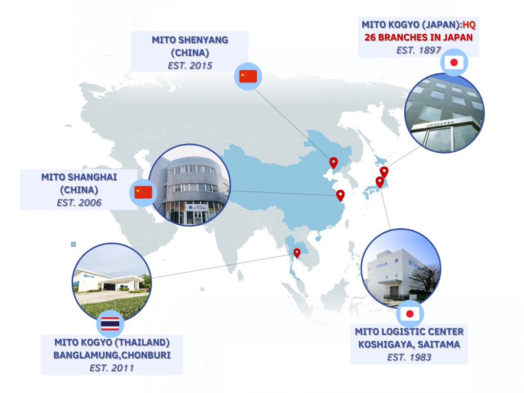 | Headquater | Mito Kogyo Co., Ltd. 6 Kitanorimonocho Kanda, Chiyoda-ku, Tokyo 101-0036 |