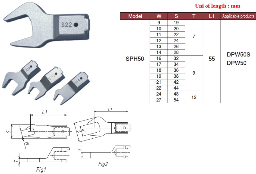 หัวประแจปากตายสำหรับประแจปอนด์ (Torque Wrench) รุ่น SPH50 ใช้งานได้กับ Adrec รุ่น DPW50S/ DPW50