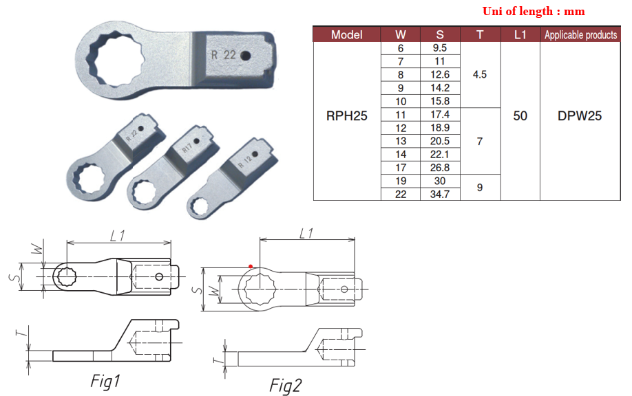 หัวเปลี่ยนชนิดแหวนรุ่น RPH25 สำหรับประแจปอนด์ (Torque Wrench) ใช้งานได้กับ Adrec รุ่น DPW25