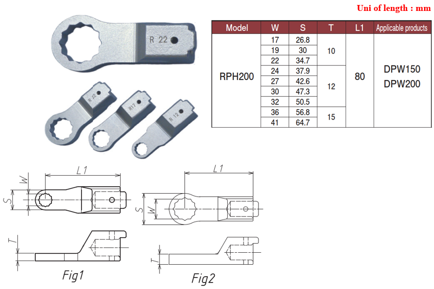 หัวเปลี่ยนชนิดแหวนรุ่น RPH200 สำหรับประแจปอนด์ (Torque Wrench) ใช้งานได้กับ Adrec รุ่น DPW150/DPW200